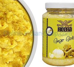 Ginger Garlic Paste is a pungent smelling condiment used commonly in Indian cooking. The Paste is smade from fresh ginger garlic, mashed into a paste and diluted with a little bit of water. Ginger garlic paste is used in many Indian curries, Tandoori dishes as well as Thai and Chinese cuisine. Ginger and Garlic are the secret ingredients of many delicious Indian spices dishes and must-have in Indian curries. Ginger garlic paste is generally used in Tikka Masala and many non vegetarian and Vegetarian dishes.This ready to use Ginger -garlic paste is very convenient way to use it in the spicy recipes preparation. All the flavor and texture of fresh ginger and garlic blended together without the inconvenience of peeling and chopping.