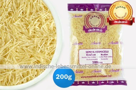 Unroasted Semiya vermicelli, Nudler, Nouilles Fines Grillees, Nouilles Multe Grillees, Bratfadennudeln, Vermicelles, Annam, 200g
